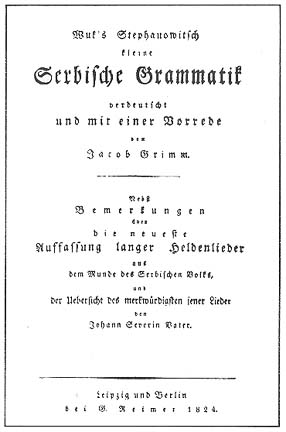 The title page of the Concise Serbian Grammar by Vuk Stefanovic