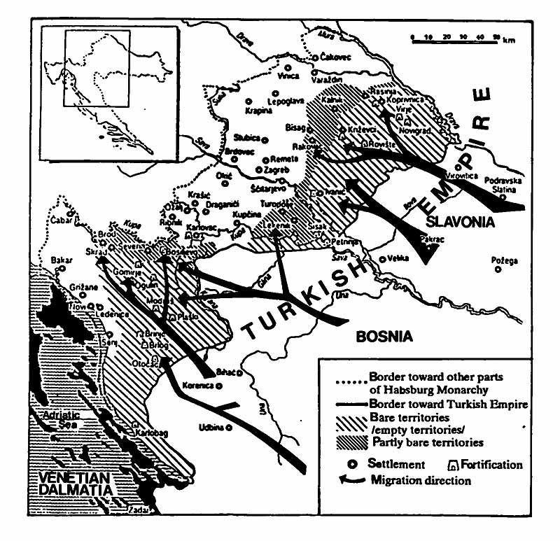 A considerable part of the territory of the former SR of Croatia was devastated and scarcely inhabited during the Turkish invasion of central Europe. The Serbs (border-region guards) were mostly settled on those empty regions. They were the antemurale cristianitis of the Christian Europe against the Turkish Empire for many centuries.