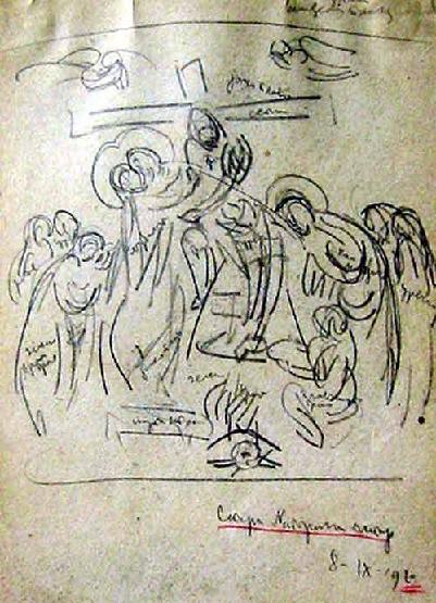Старо Нагоричано, детаљ, цртеж оловком, 1920.