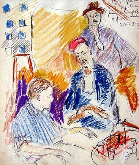 На двору Фитен, оловка и пастел