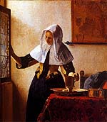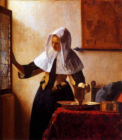 Вермер је срећу учинио видљивом на неким од оних својих платана на којима је сликао жене (можда једну исту жену?), и то не у природи, већ у склоњености дома, али увек крај прозора кроз који у присност собе стиже чудесна светлост неприказаних висина и ширина спољњег света, о којима посредством те светлости, међутим, тако ипак знамо. Штавише, о лепоти света се захваљујући тој светлости непосредно осведочујемо, посебно, пак, посматрајући њен одсјај на увек истом високом, засвођеном челу насликаних жена, који је чаробни белег њихове лепоте.